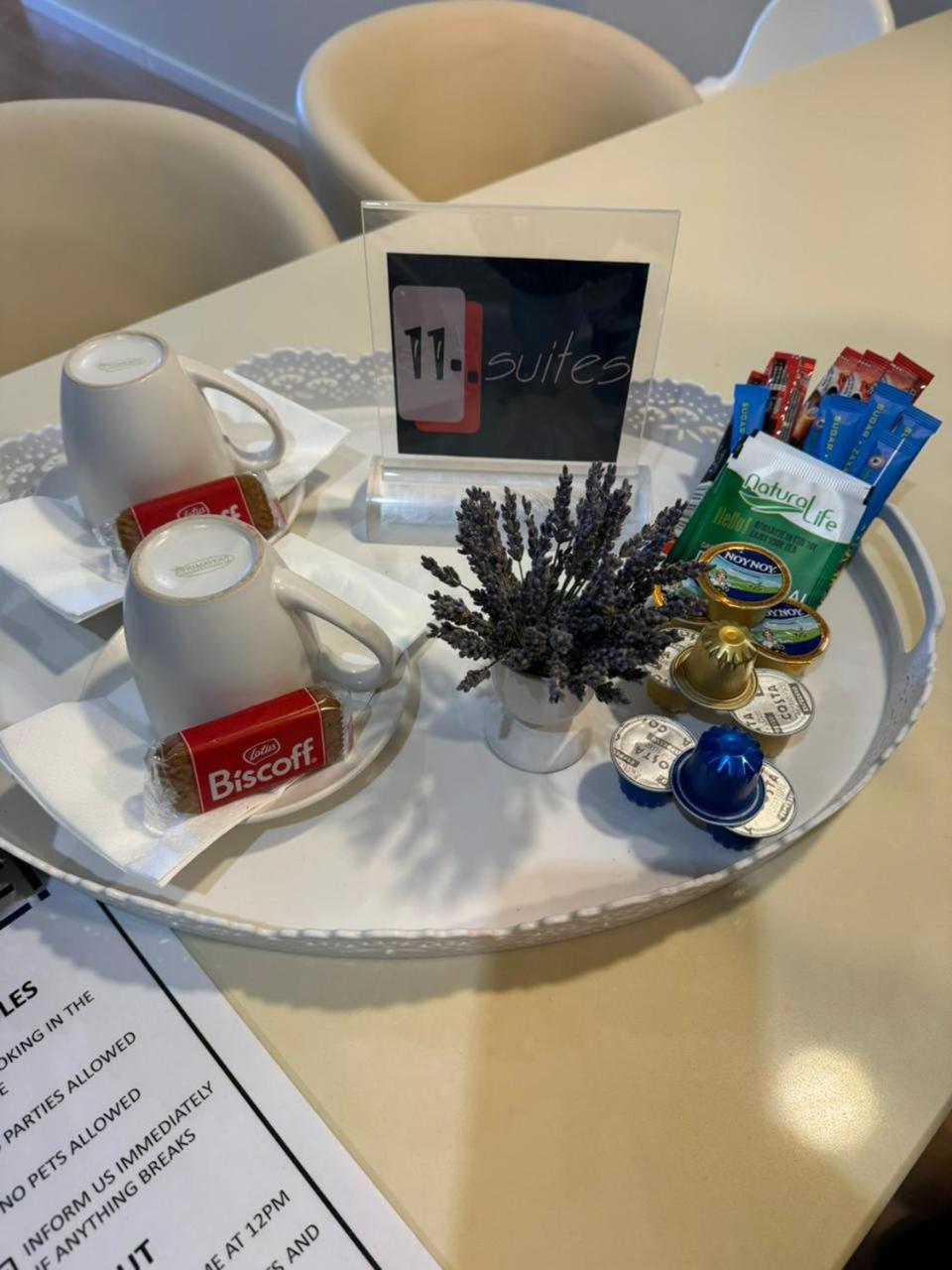 Shared stationery such as printed menus, magazines, pens, and paper removed