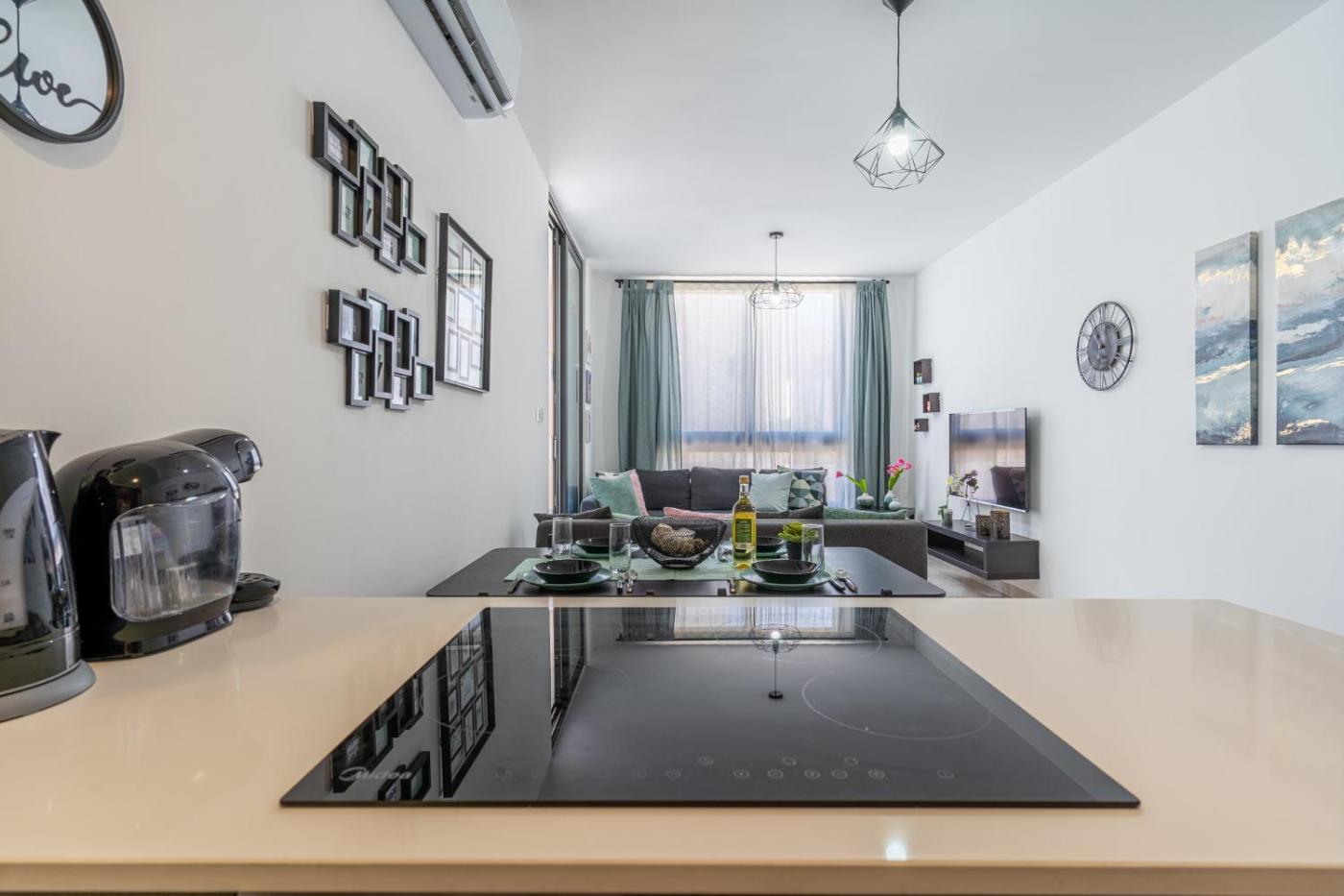 Apartment with Balcony. Boasting a private entrance, this air-conditioned apartment comes with 1 living room, 1 separate bedroom and 1 bathroom with a bath or a shower and a hairdryer. Guests can make meals in the kitchen that features a stovetop, a refrigerator, kitchenware and an oven. This apartment has a washing machine, a coffee machine, a flat-screen TV and a terrace. The unit has 2 beds.