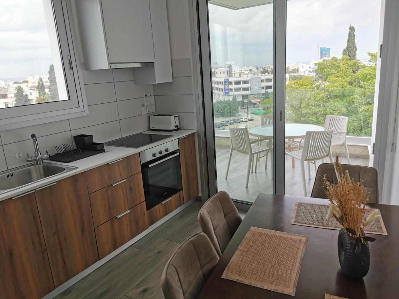 One-Bedroom Apartment with Balcony and City View. Featuring a private entrance, this air-conditioned apartment comprises 1 living room, 1 separate bedroom and 1 bathroom with a walk-in shower and a hairdryer. The well-fitted kitchen has a stovetop, a refrigerator, kitchenware and an oven. The apartment features tiled floors, a seating area with a flat-screen TV, a washing machine, soundproof walls as well as city views. The unit offers 2 beds. ;