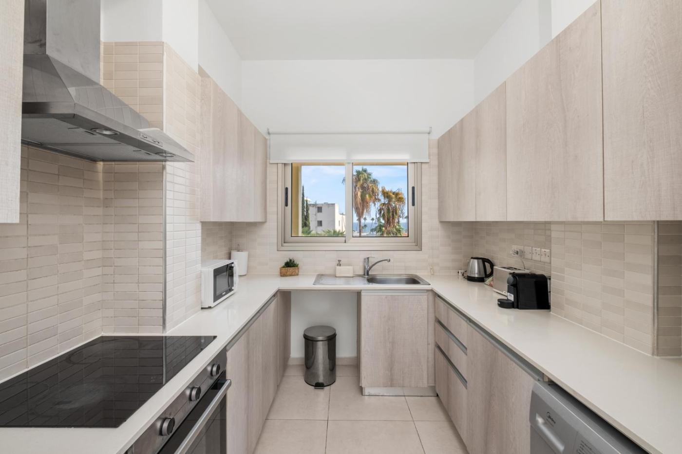 Two-Bedroom Apartment. This spacious apartment comprises 1 living room, 2 separate bedrooms and 1 bathroom with a bath and free toiletries. Meals can be prepared in the well-fitted kitchen, which comes with a stovetop, a refrigerator, an oven and a microwave. The air-conditioned apartment provides a flat-screen TV, a washing machine, a private entrance, soundproof walls as well as sea views. The unit offers 4 beds.