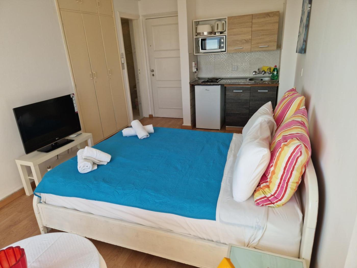 Studio Apartment with Sea View. Featuring a private entrance, this air-conditioned apartment consists of 1 living room, 1 separate bedroom and 1 bathroom with a bath or a shower. The well-equipped kitchen features a stovetop, a refrigerator, kitchenware and a microwave. Boasting a balcony with sea views, this apartment also provides a tea and coffee maker and a flat-screen TV. The unit offers 1 bed. ;