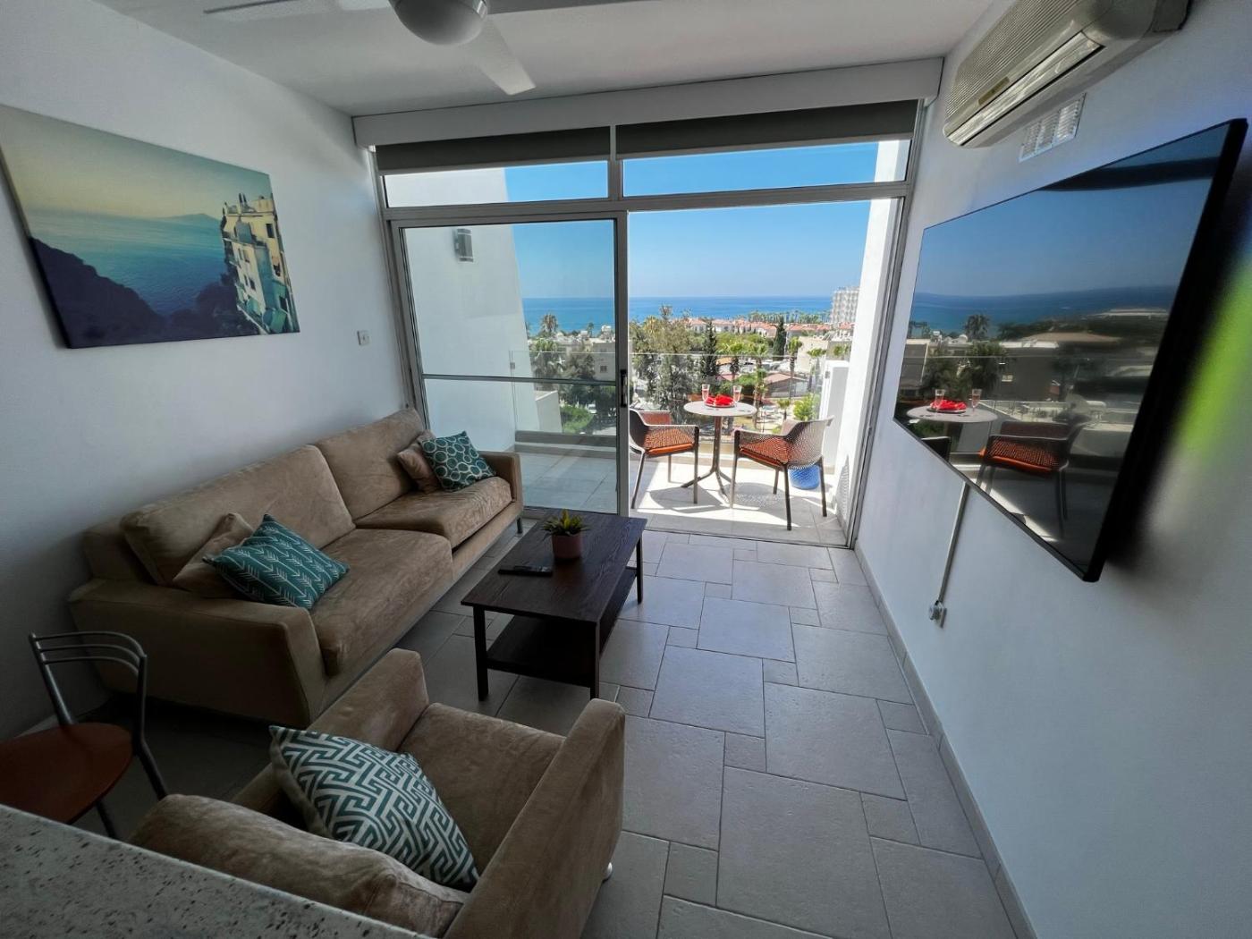 Apartment with Sea View. This air-conditioned apartment comprises 1 living room, 1 separate bedroom and 1 bathroom with a walk-in shower. Meals can be prepared in the kitchen, which comes with a refrigerator, an oven, a microwave and a toaster. Featuring a balcony with sea views, this apartment also provides a washing machine and a flat-screen TV. The unit offers 2 beds.