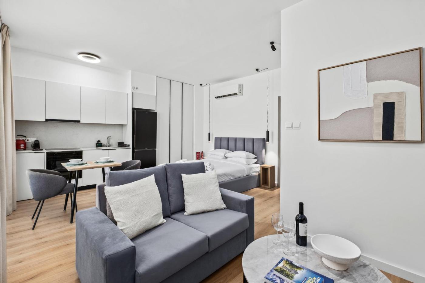 Studio. Offering free toiletries, this studio includes a private bathroom with a shower and a hairdryer. The well-equipped kitchen has a stovetop, a refrigerator, kitchenware and an oven. This studio is air-conditioned and features a seating area with a flat-screen TV, a washing machine, a tea and coffee maker, a dining area, as well as a wardrobe. The unit offers 1 bed.