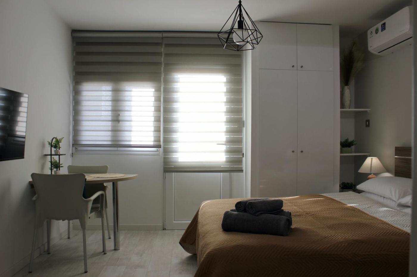 One-Bedroom Apartment. This air-conditioned apartment includes 1 living room, 1 separate bedroom and 1 bathroom with a shower. The fully equipped kitchen has a stovetop, a refrigerator, kitchenware and a tea and coffee maker. Boasting a terrace with city views, this apartment also offers soundproof walls and a flat-screen TV. The unit has 2 beds. ;