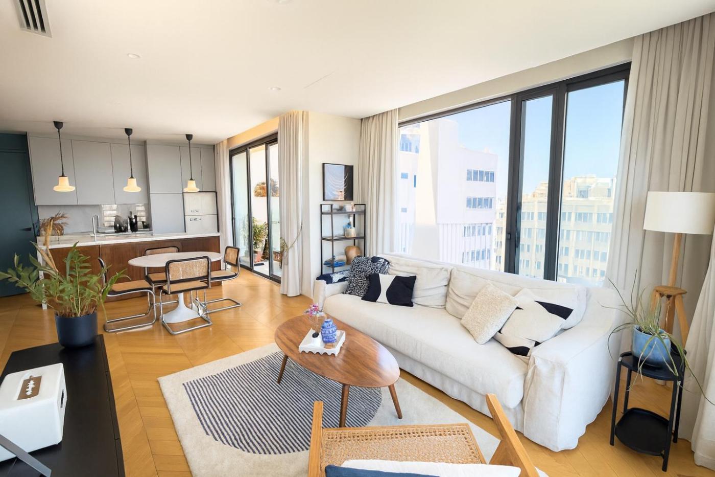 Two-Bedroom Apartment. The fully equipped kitchen has a refrigerator, a dishwasher, an oven and a microwave. The spacious air-conditioned apartment features a flat-screen TV with cable channels, a washing machine, a private entrance, a tea and coffee maker as well as city views. The unit has 2 beds.