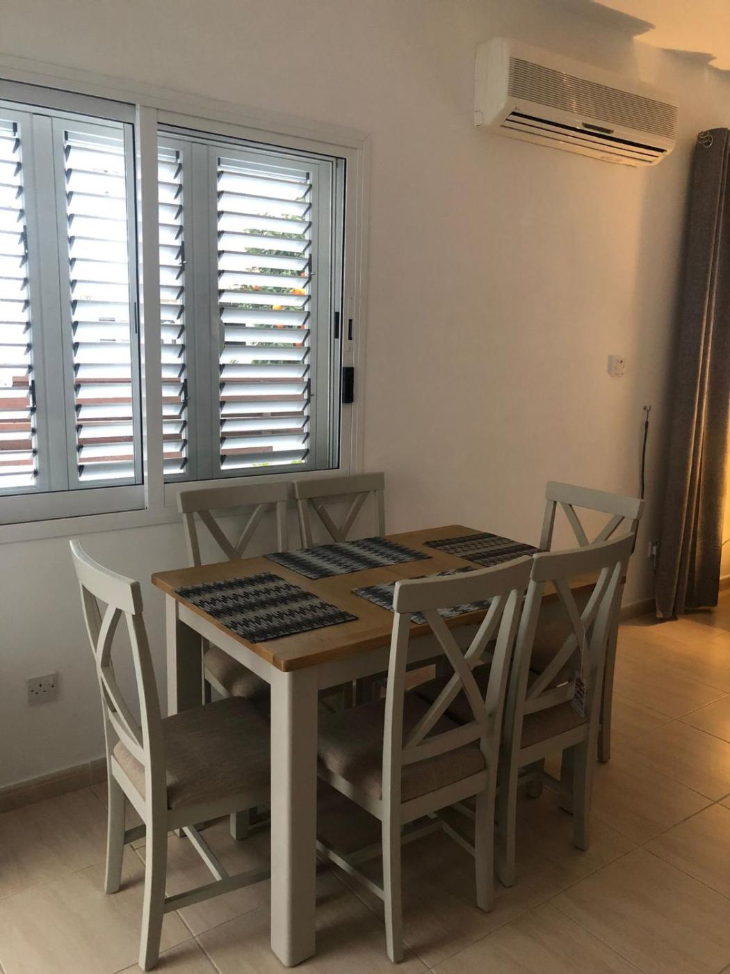 Apartment - Ground Floor. Featuring a private entrance, this air-conditioned apartment consists of 1 living room, 2 separate bedrooms and 1 bathroom with a shower and a hairdryer. Guests can make meals in the kitchen that is equipped with a stovetop, a refrigerator, kitchenware and an oven. Boasting a terrace with garden views, this apartment also provides a washing machine and a flat-screen TV with streaming services. The unit offers 4 beds.
