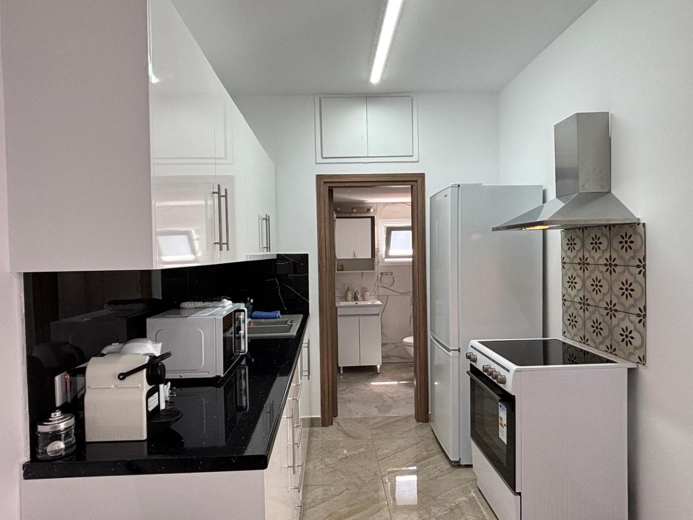 One-Bedroom Apartment. Boasting a private entrance, this air-conditioned apartment features 1 living room, 1 separate bedroom and 1 bathroom with a shower and a hairdryer. In the kitchen, guests will find a stovetop, a refrigerator, kitchenware and an oven. This apartment has a washing machine, a coffee machine, a flat-screen TV with cable channels and a balcony. The unit has 2 beds.