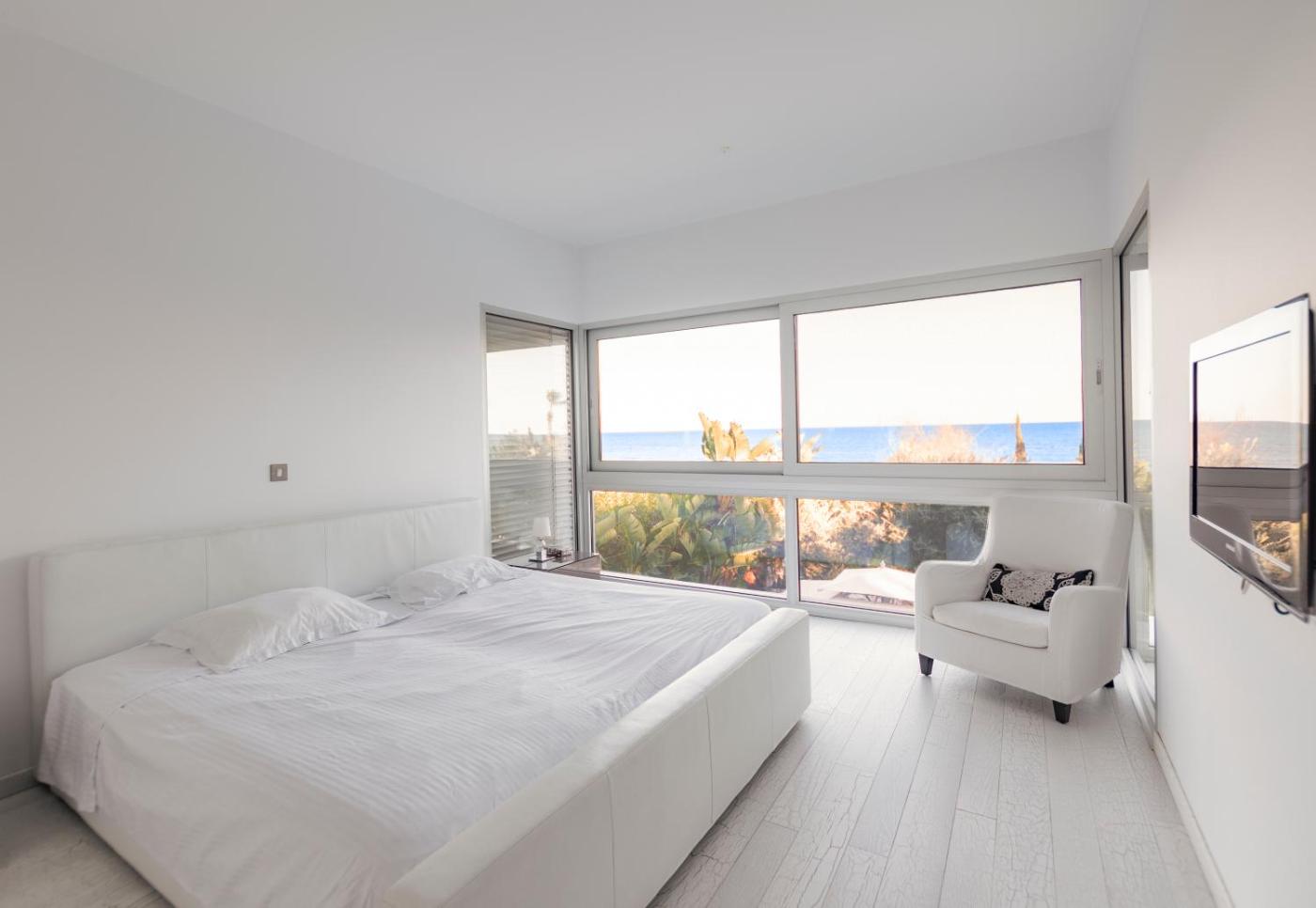 Three-Bedroom House. Guests will have a special experience as this holiday home provides a pool with a view, a hot tub and a fireplace. Boasting a private entrance, this air-conditioned holiday home includes 2 living rooms, 3 separate bedrooms and 3 bathrooms with a walk-in shower and a bath. Guests will find a stovetop, a refrigerator, a dishwasher and kitchenware in the kitchen. The holiday home also features a barbecue. The spacious holiday home offers a flat-screen TV with cable channels, a washing machine, soundproof walls, a tea and coffee maker as well as sea views. The unit has 5 beds.