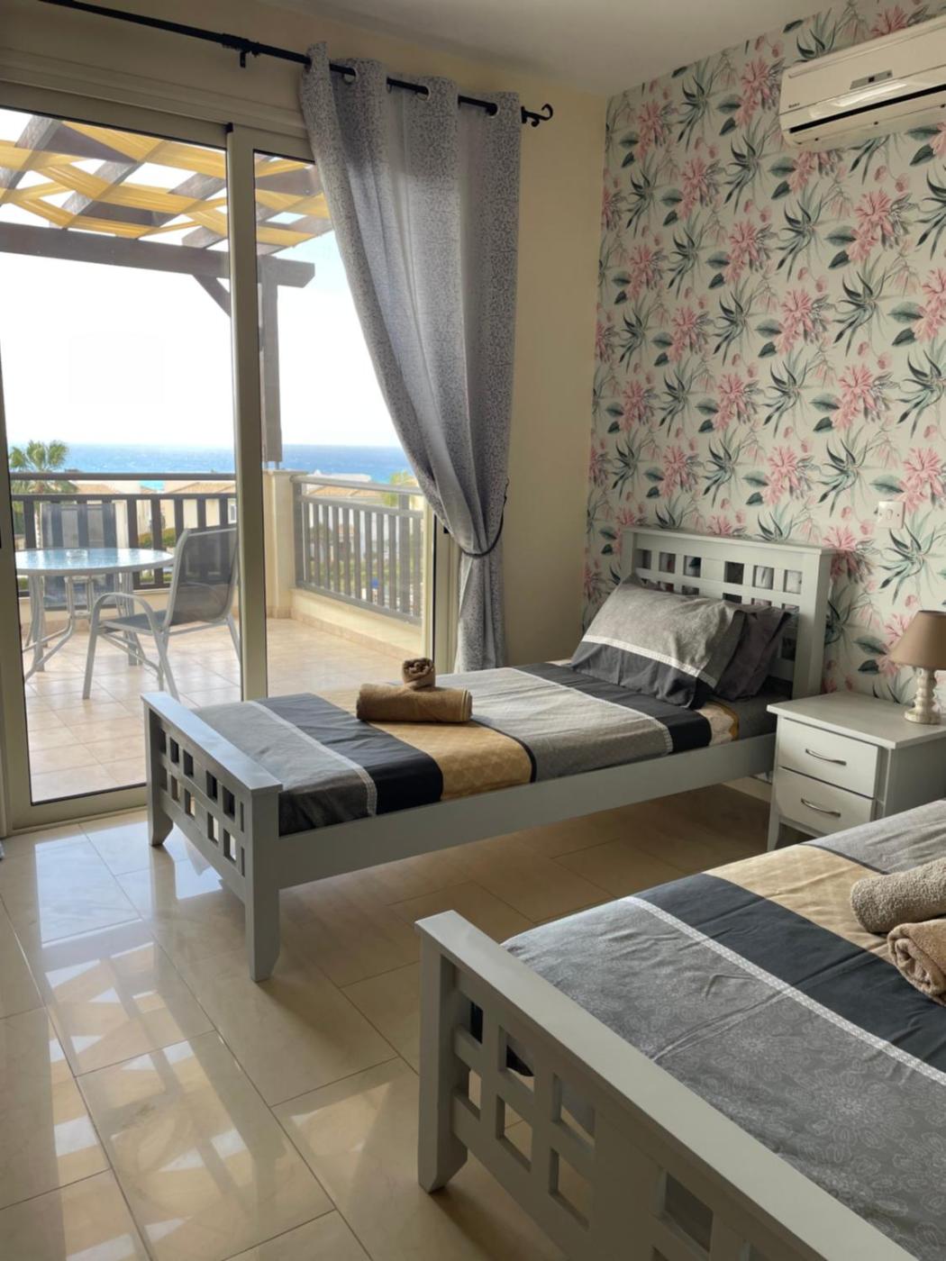 Three-Bedroom Villa. The pool with a view is the standout feature of this villa. Boasting a private entrance, this air-conditioned villa features 1 living room, 3 separate bedrooms and 2 bathrooms with a walk-in shower and a bath. Guests will find a stovetop, a refrigerator, kitchenware and an oven in the fully equipped kitchen. The villa also comes with a barbecue. Featuring a terrace with sea views, this villa also features a washing machine and a flat-screen TV. The unit has 6 beds.