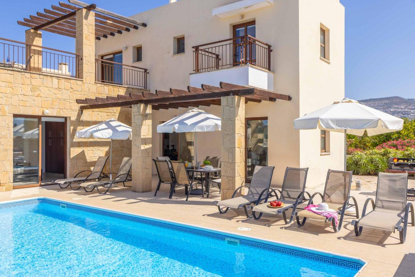 The villa conveniently has an outdoor pool.