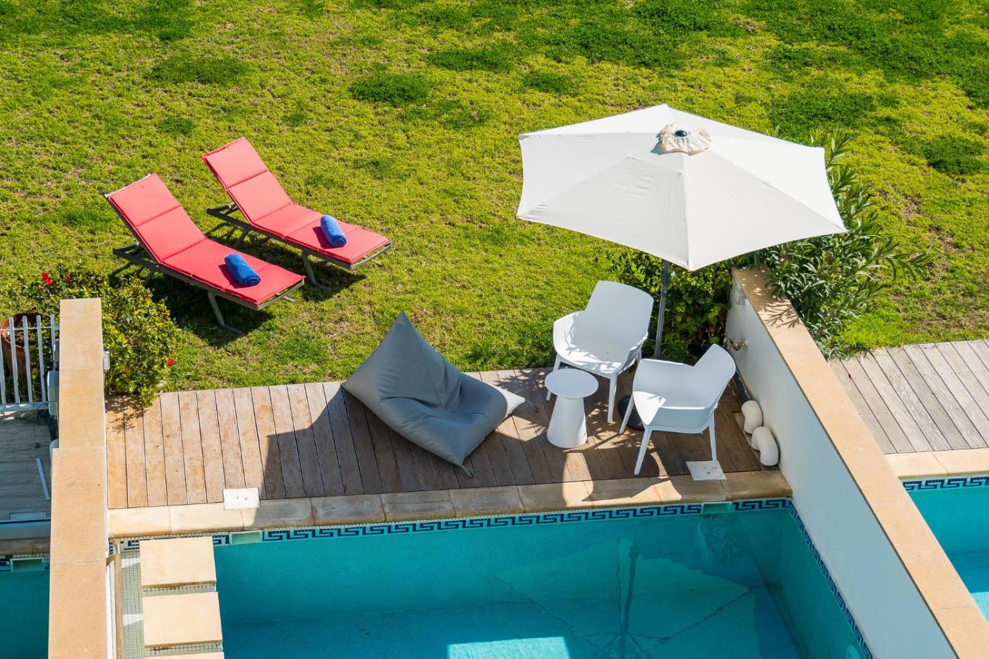 Guests can enjoy the outdoor swimming pool at the villa.