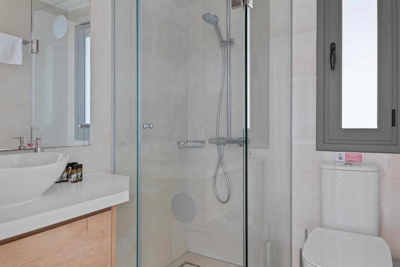 The spacious villa with a terrace and sea views has 4 bedrooms, a living room, a flat-screen TV, an equipped kitchen with a dishwasher and an oven, and 5 bathrooms with a walk-in shower. Towels and bed linen are offered in the villa. For added privacy, the accommodation has a private entrance and soundproofing.